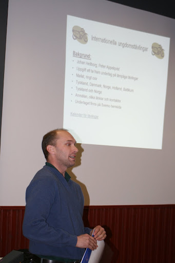 Johan Hellborg utbildade/informerade oss om fysisk träning, kost samt berättade om utlandstävlingar för ungdomar och olika hemsidor som är bra.